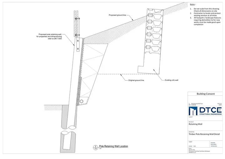 Boundary walls along two edges of the property had failed and required replacement. Due to the site’s geometry and restricted access, a single retaining solution was not practical. We developed a tailored design using a combination of wall types to achieve structural efficiency while remaining buildable on a constrained site.